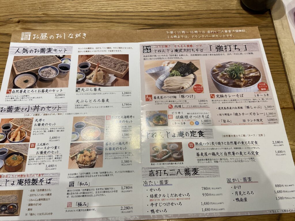 自然薯推しのお店ですが、天丼、カツ、海鮮丼、鶏天丼、「究極のカレーそば」など、魅力的なメニューが豊富。