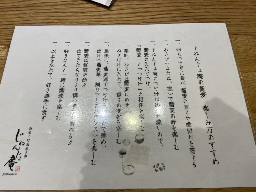 店内には、じねんじょ庵おすすめの「蕎麦の楽しみ方」が掲示されています。