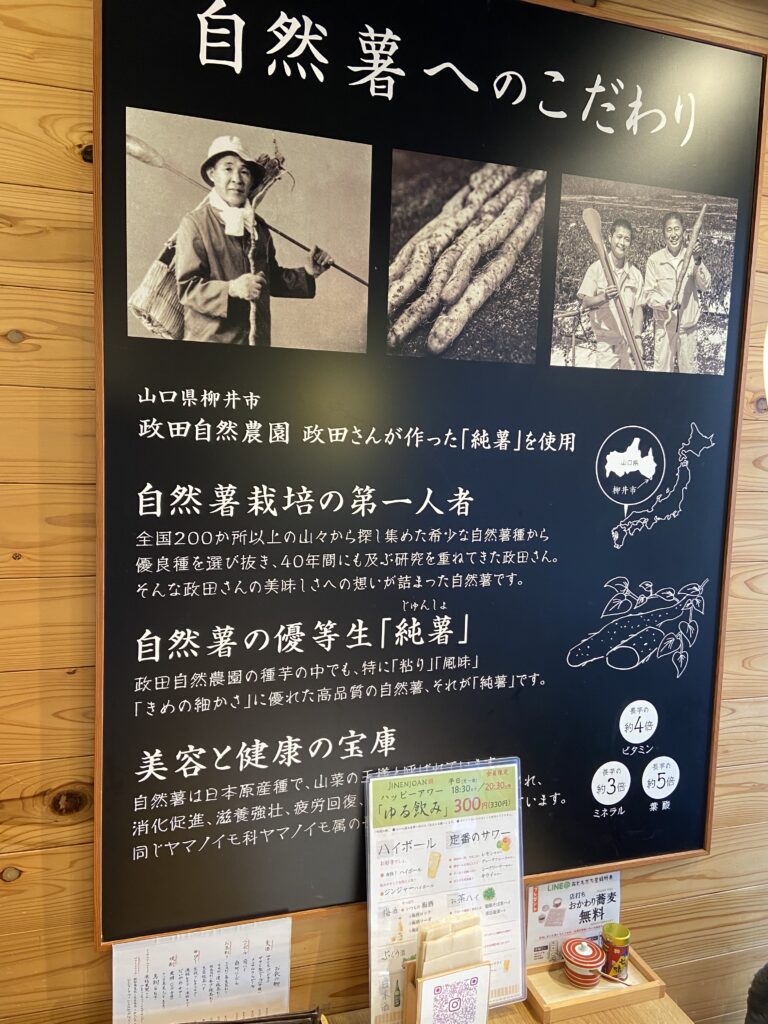 じねんじょ庵で使用している自然薯は、山口県柳井市の 「政田自然農園」政田さん が育てる「純薯(じゅんしょ)」。
