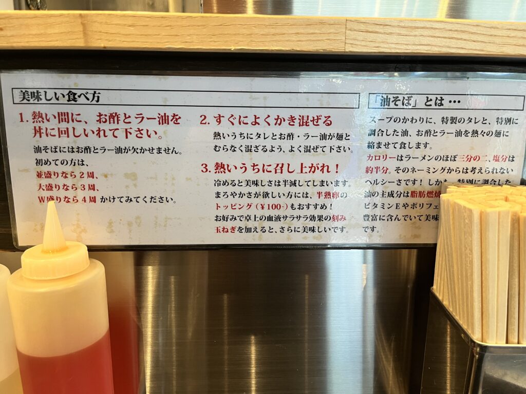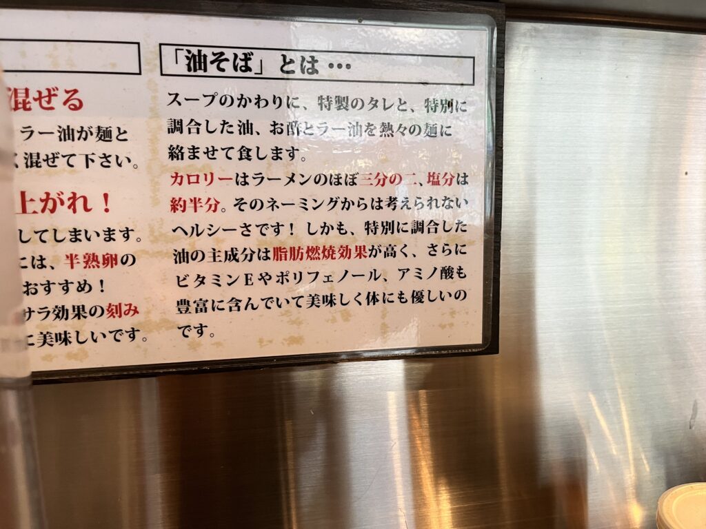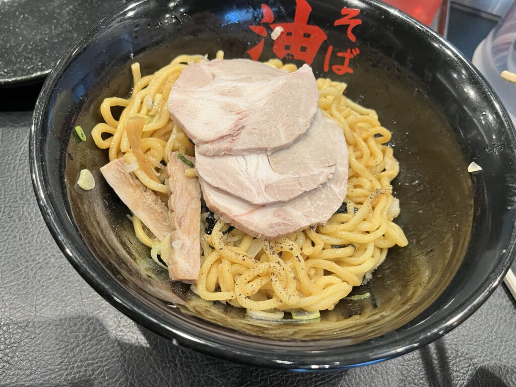 油そばはスープがないため、ラーメンとは少し違うジャンル。