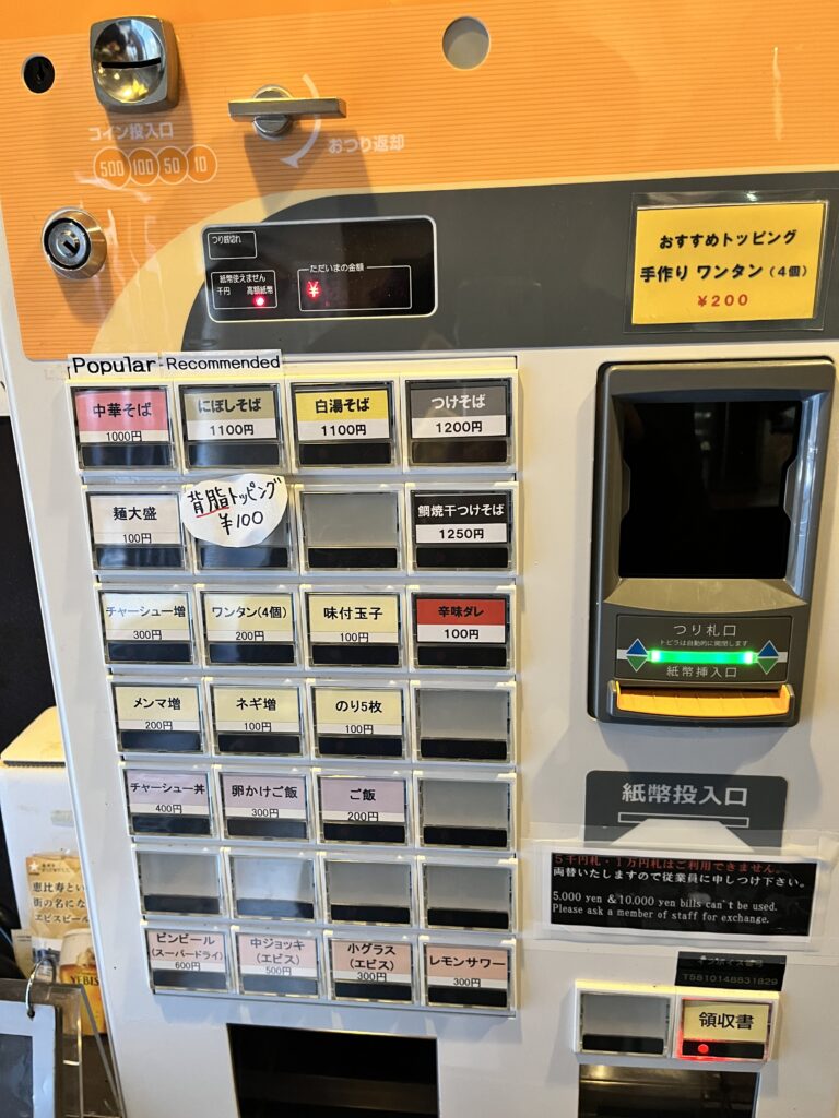 入店するとすぐ左に券売機があります。支払いは現金のみ。