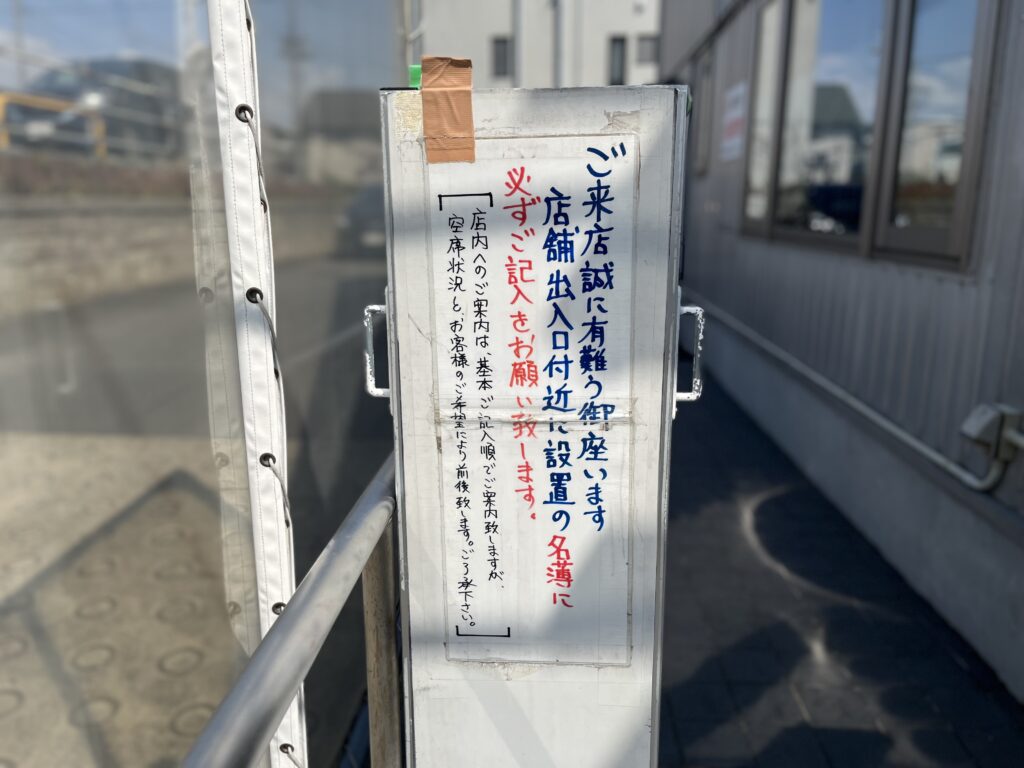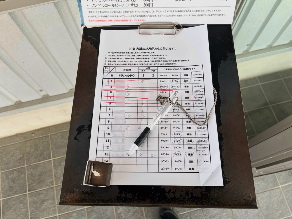 - 暖簾の手前にある名簿に記入