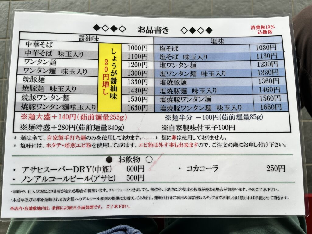 メニュー|醤油・塩の2軸+カスタマイズあり