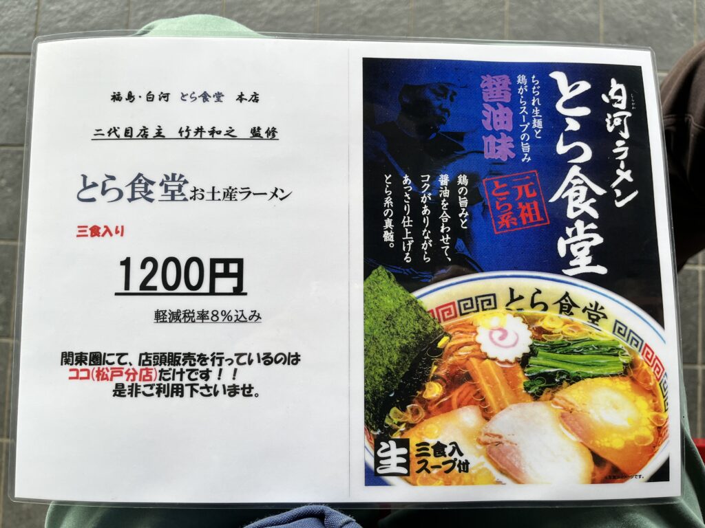 松戸分店限定の持ち帰りラーメンあり。