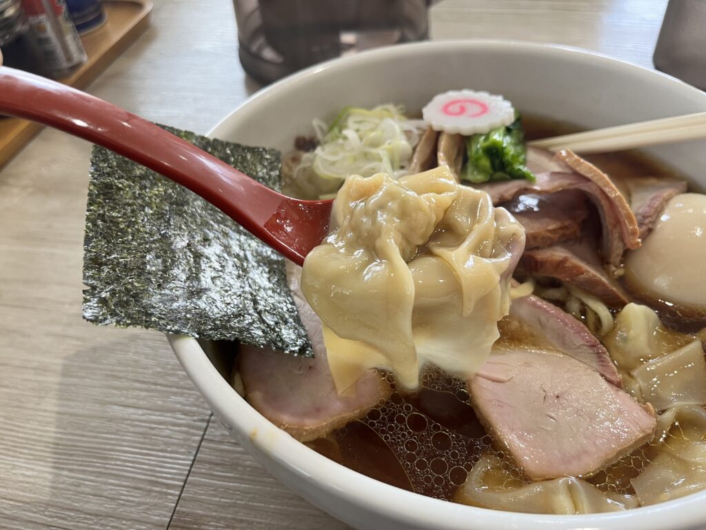 チャーシューの下にワンタンが隠れている演出も◎。