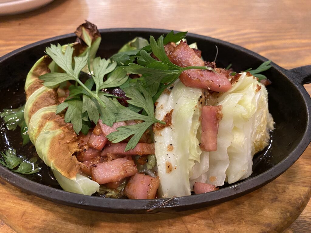 ベーコンまで手作りなんじゃないかと思わせる料理です。素材を生かした料理とはまさにこれのこと。アンチョビとベーコンとキャベツのバランスがよく、具材の旨みが生きた逸品です。