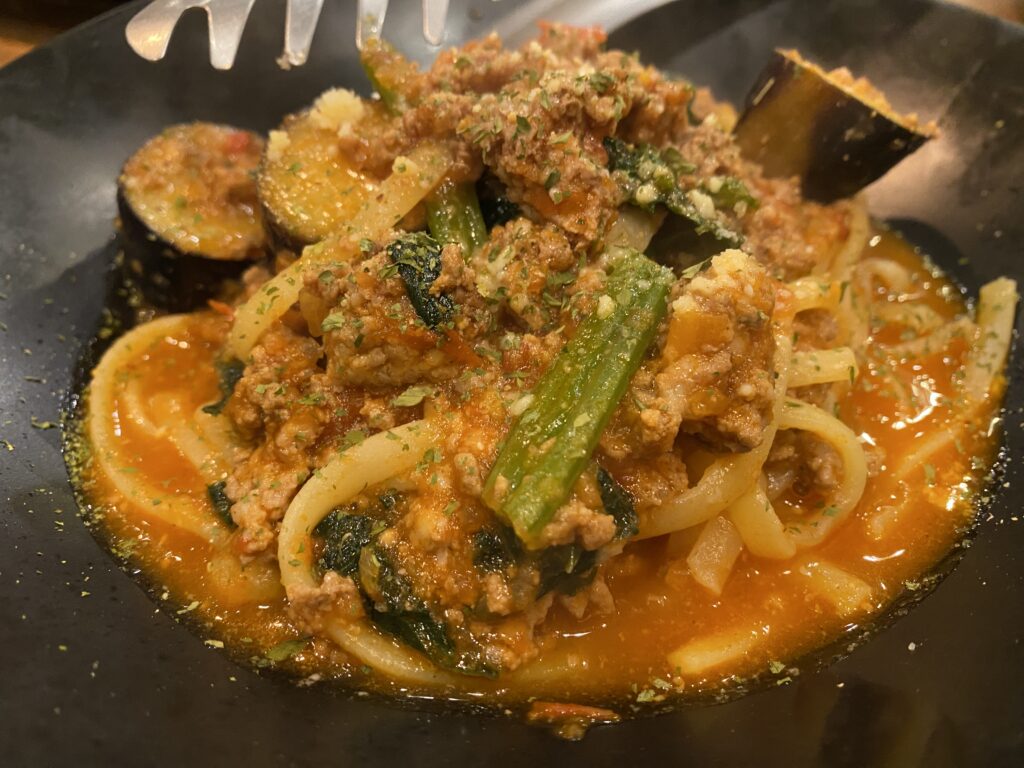 ナスの自家製ポロネーゼパスタ