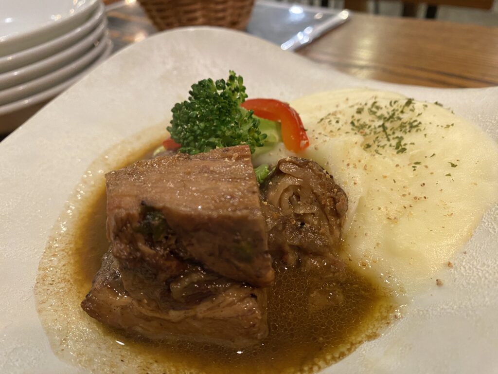 ホロホロとほどける柔らかさ。コク深いソースがパンにもよく合います。