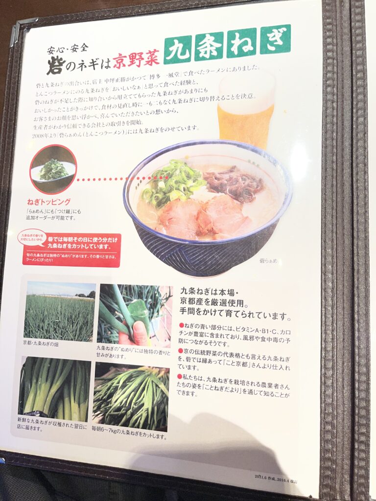 特にねぎは、安心安全な京都産の厳選九条ねぎを使用していることを教えてくれます。