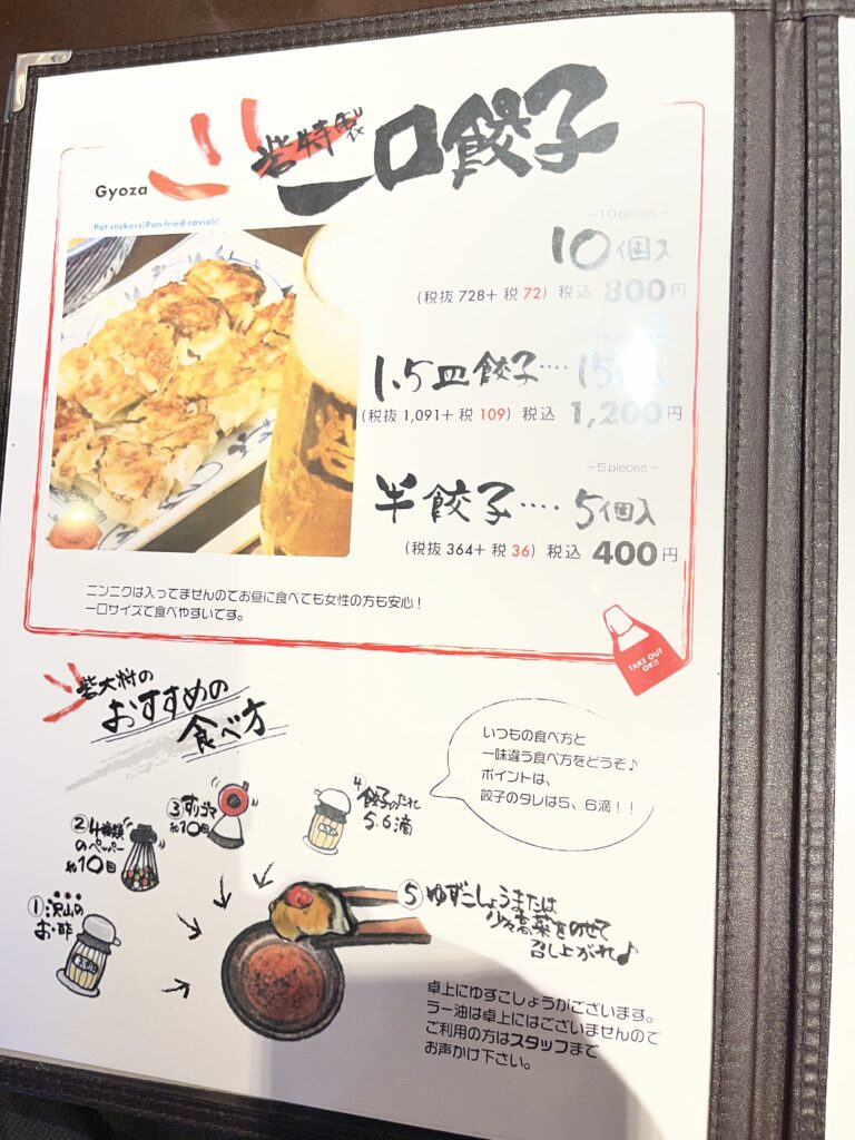 1.5人前(15個)や半餃子(5個)のオーダーも可能です。