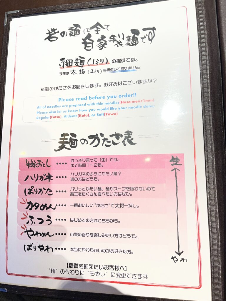 注文時には、麺のかたさを聞かれます。