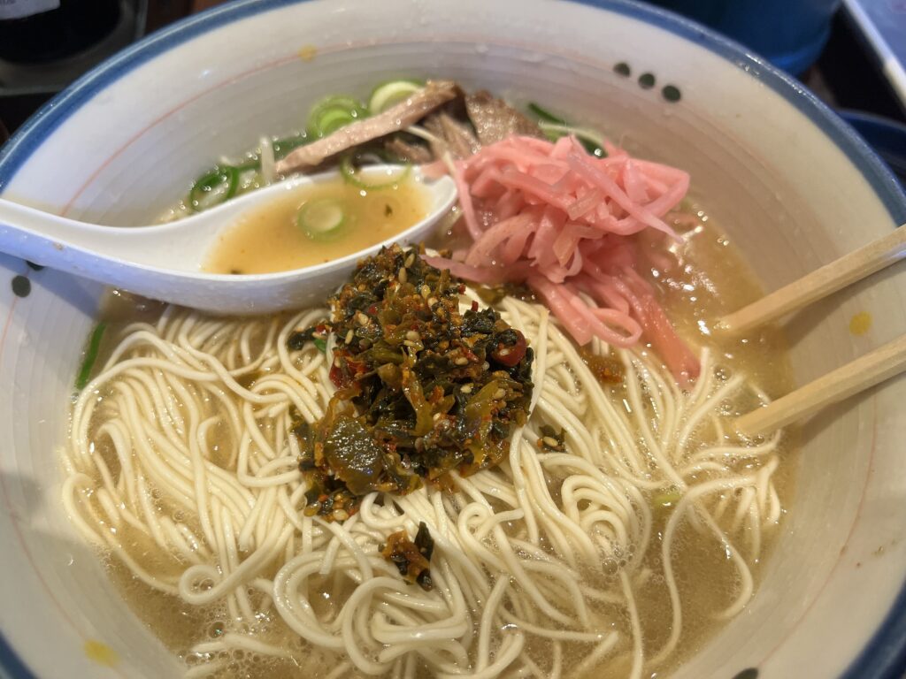 個人的には、2杯目(替え玉)で、辛子高菜+紅生姜+ニンニクを追加するのが楽しく、ちょうどいいバランスでした。