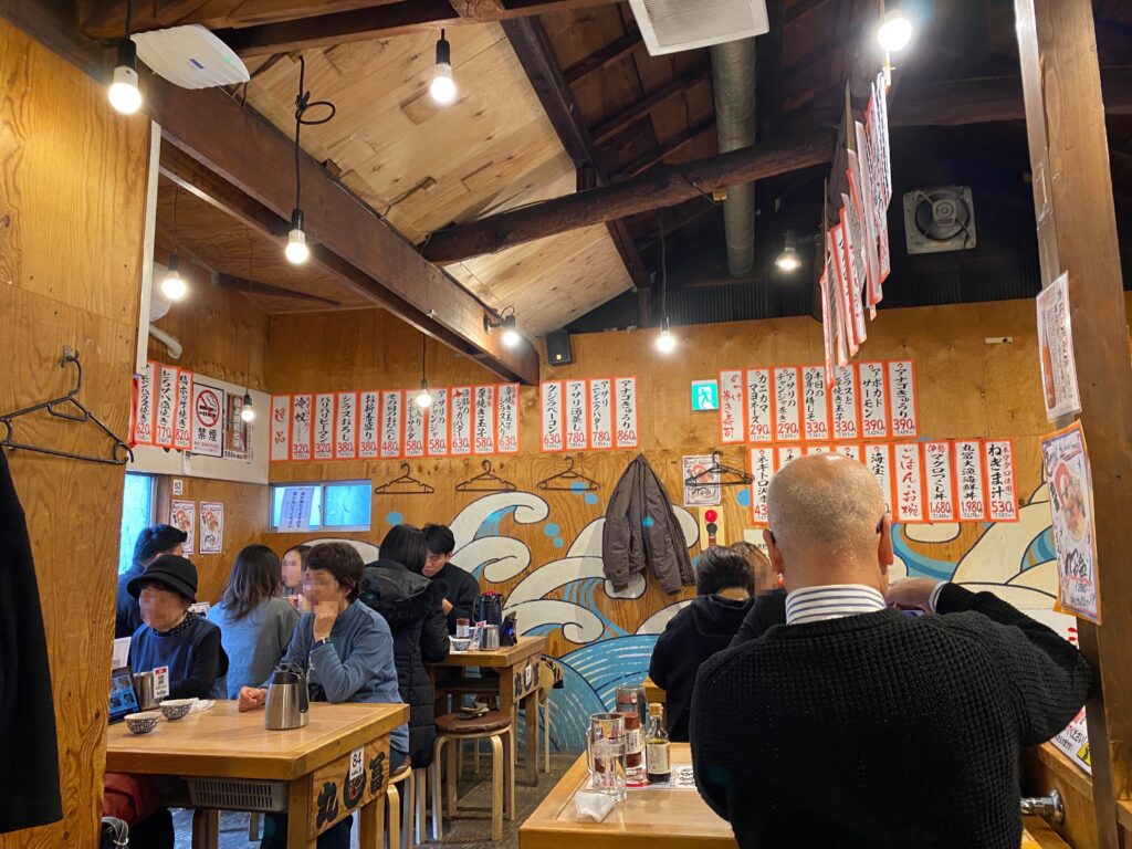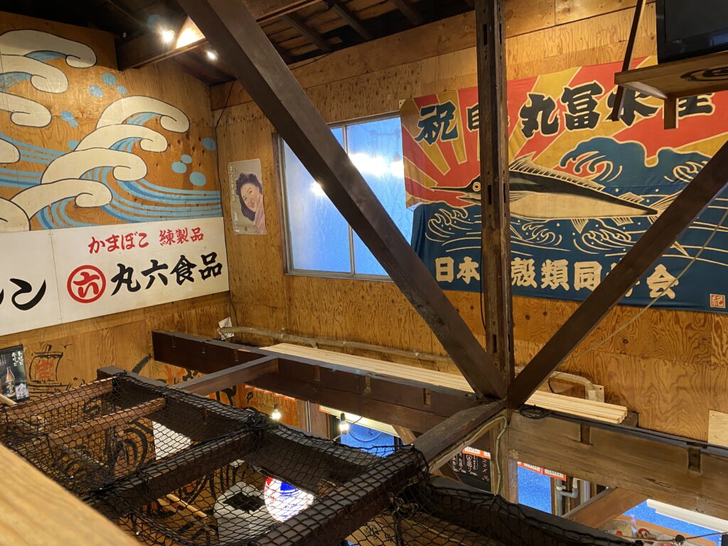 漁港の雰囲気が演出された店内で、年配層も多く利用していました。