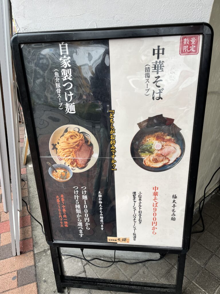 大田区糀谷にある人気ラーメン店 つけ麺 自家製麺 大輝