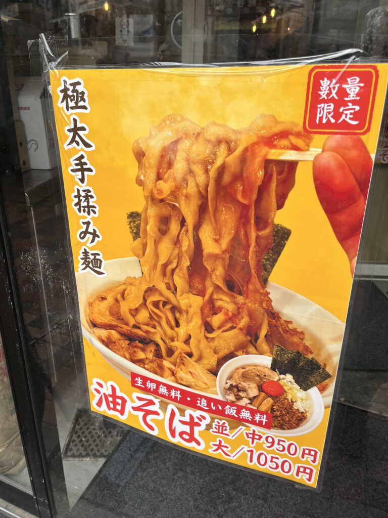 残念ながら訪問したのはお昼だったため朝ラーは終了していましたが、極太麺の中華そばや油そばを楽しむことができました。