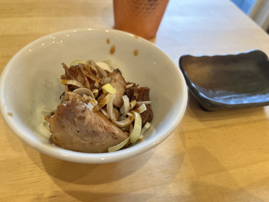 サービスのお通しとして チャーシューが提供されました。