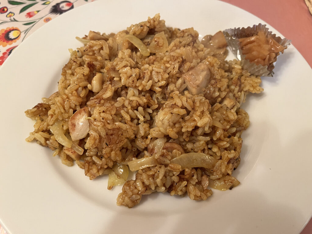 鶏肉と野菜をケチャップで炒めた王道スタイル。