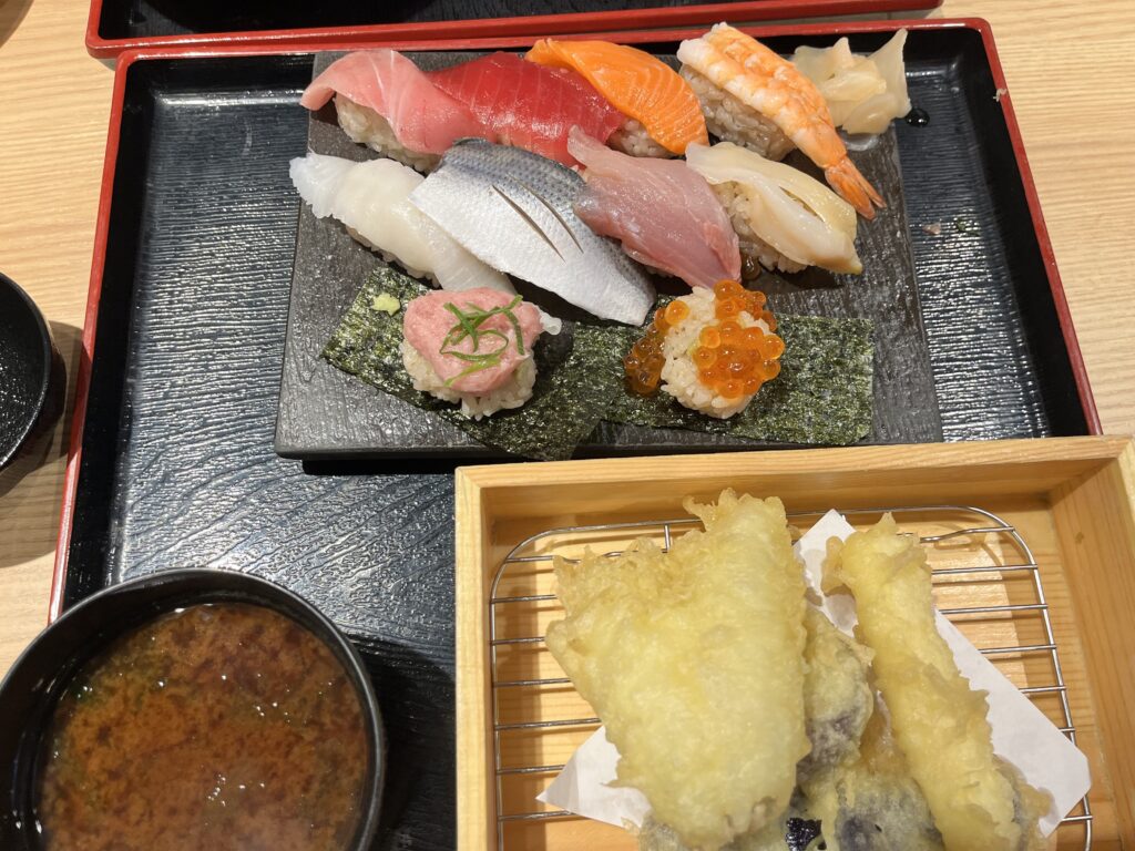 10貫のお寿司と天ぷらが、美味しく満足のいく量。