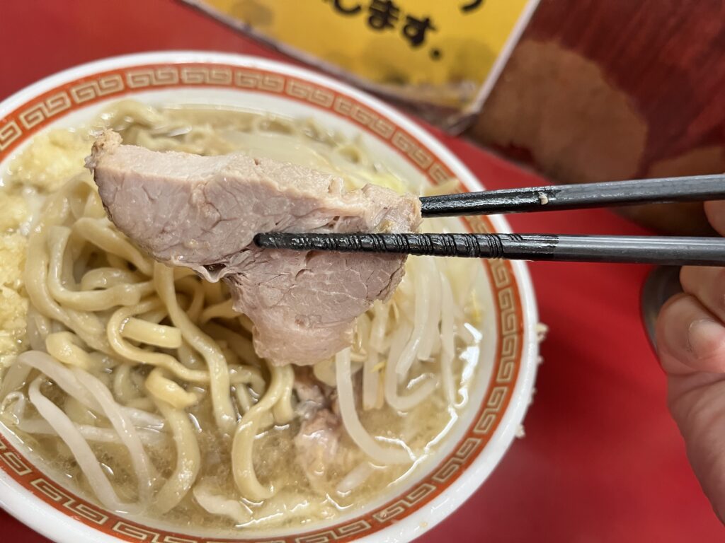 麺はゴワゴワした極太麺で、これぞ二郎という食感。
