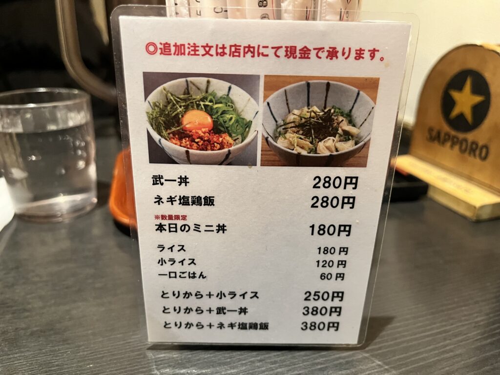 初台エリアらしく「ラーメン+一杯」という使い方もできそうです。