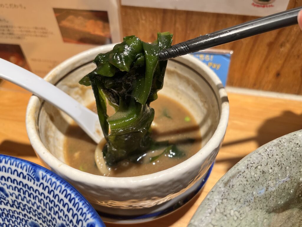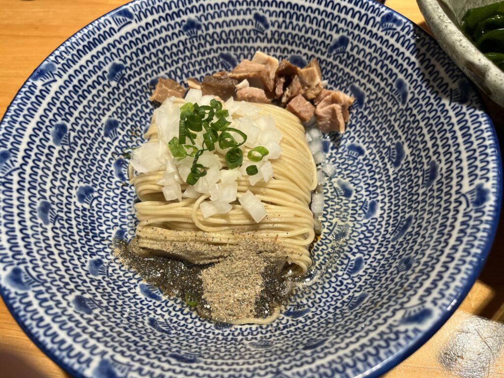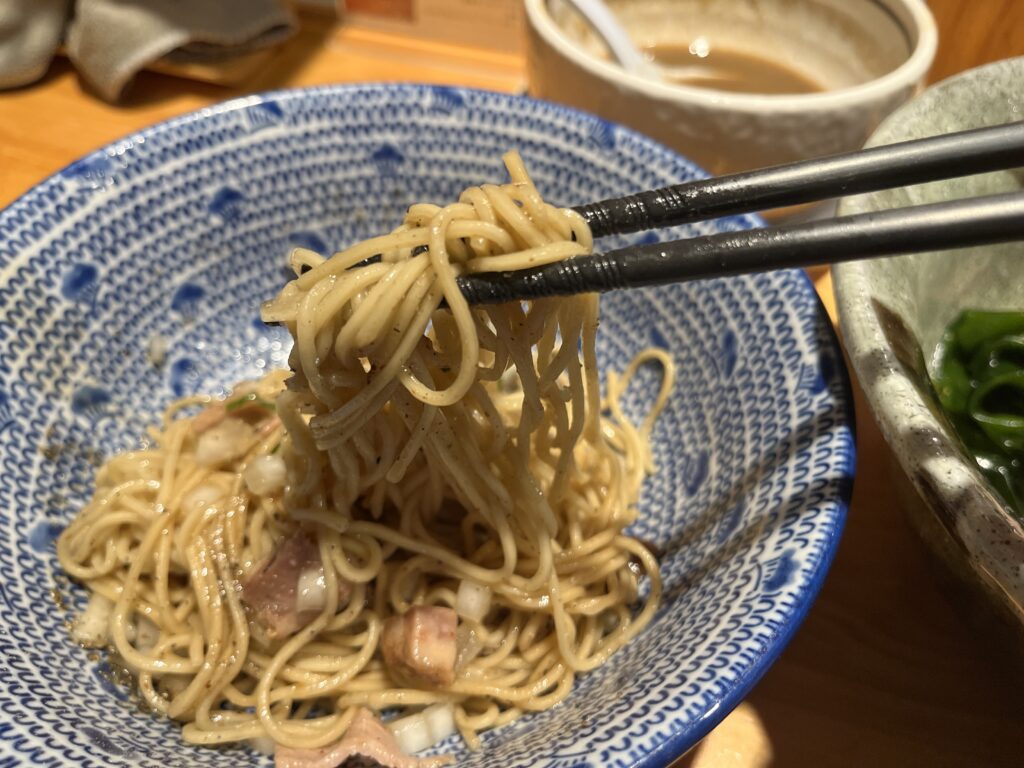 煮干しの甘い脂に爽やかな香りが重なり、食べ進めるほどに味の奥行きを感じる構成です。