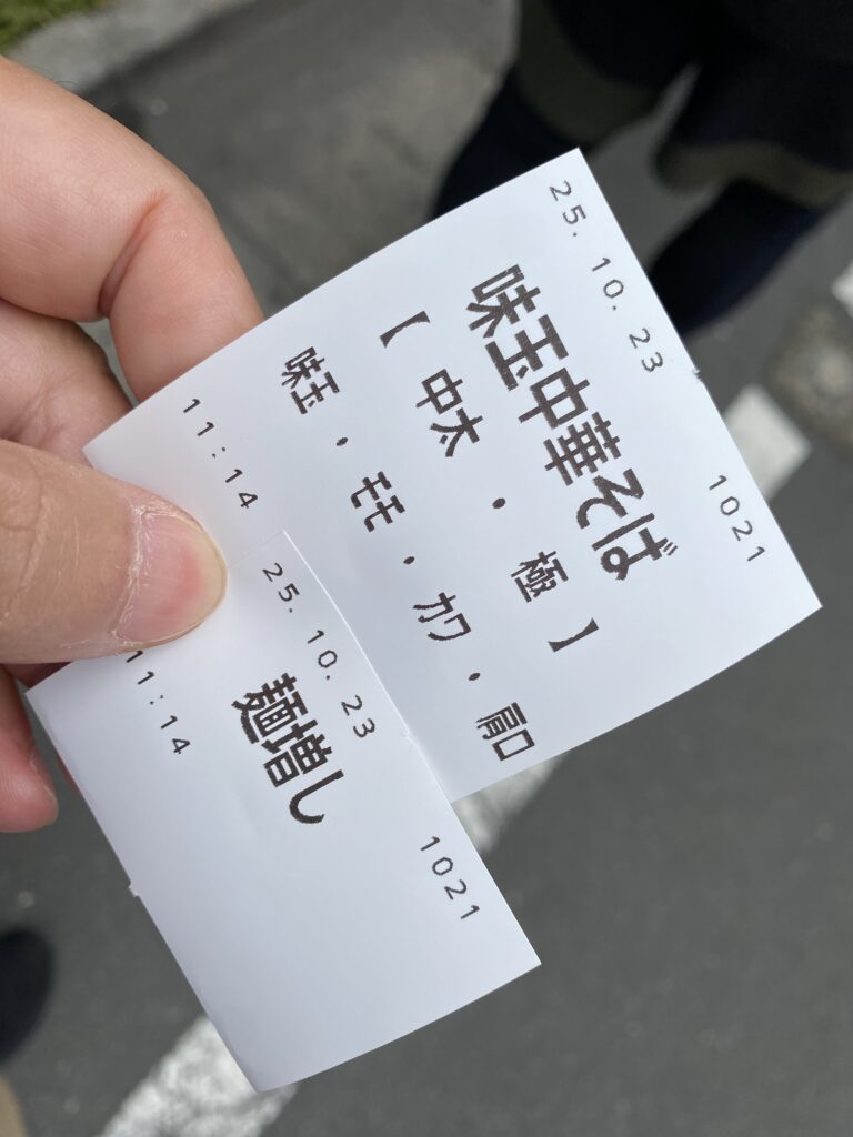 | 11:14 | 食券購入 | 「味玉中華そば+大盛り」購入。交通系ICカードが使用可能。 |