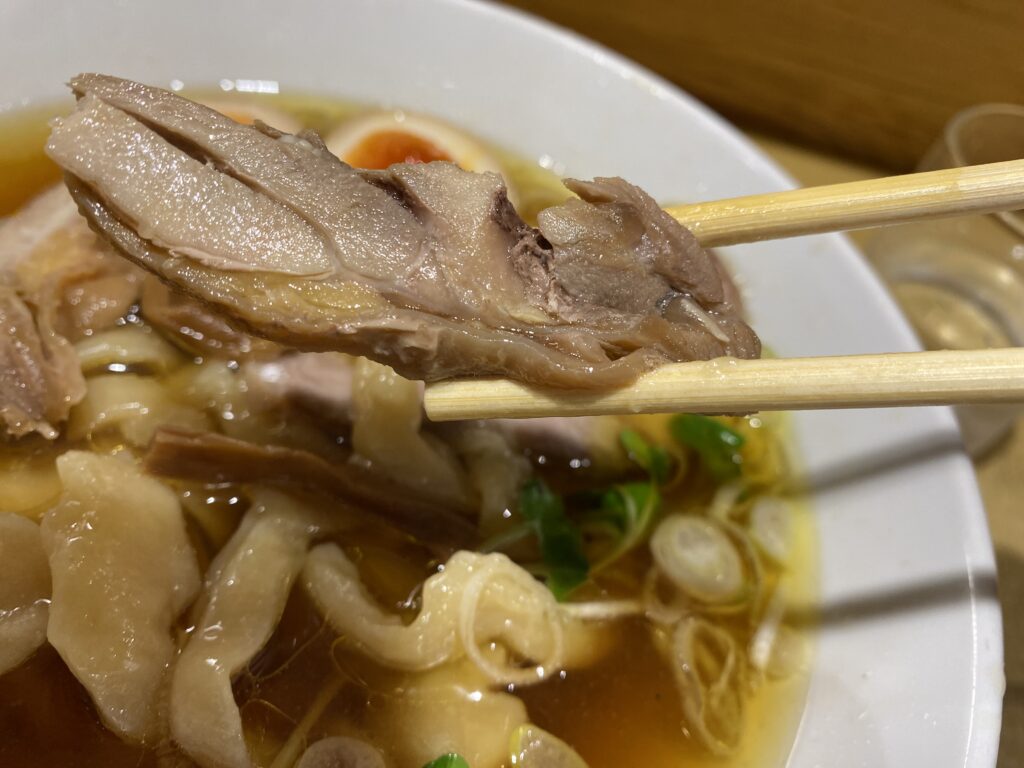 親鶏は、中華そばとは異なり、コリコリした食感の部分が多く入っていました。