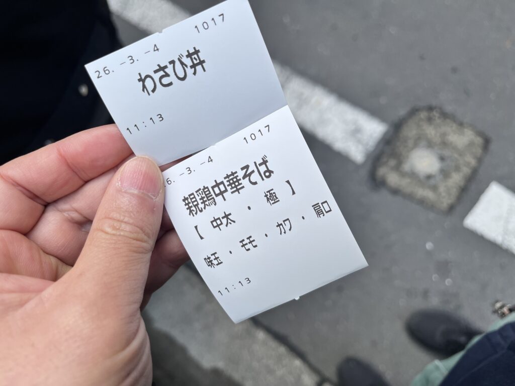 | 11:14 | 食券購入 | 「味玉中華そば+大盛り」購入。交通系ICカードが使用可能。 |