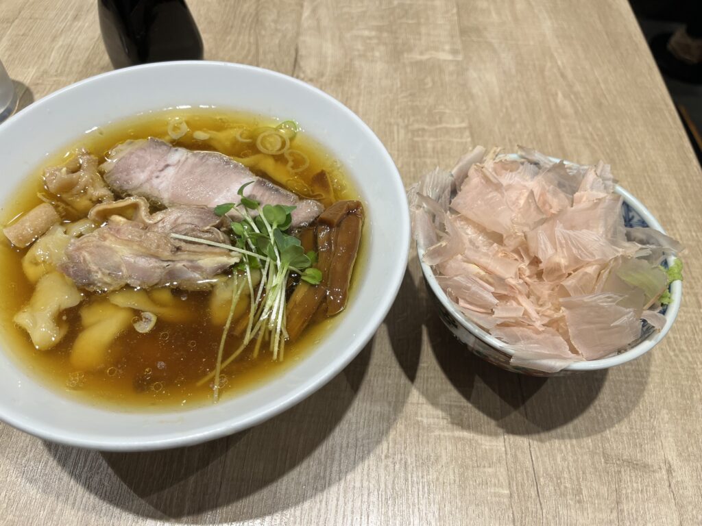 本枯れ節が美しくさえ映りますが、その上から軽く醤油をかけて、親鶏中華そばと一緒に頬張ります。美味しい。醤油もかけすぎなくて良かった。