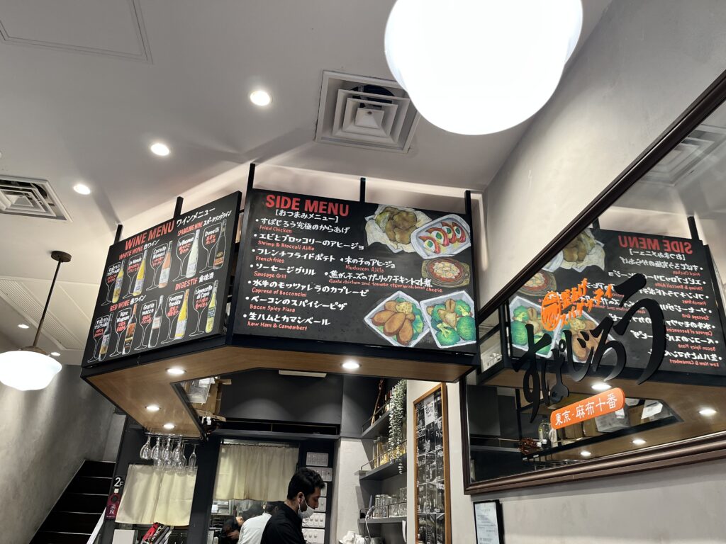 麻布十番も駅近です。お店は少し狭い感じですが、2階にもテーブルがあります。