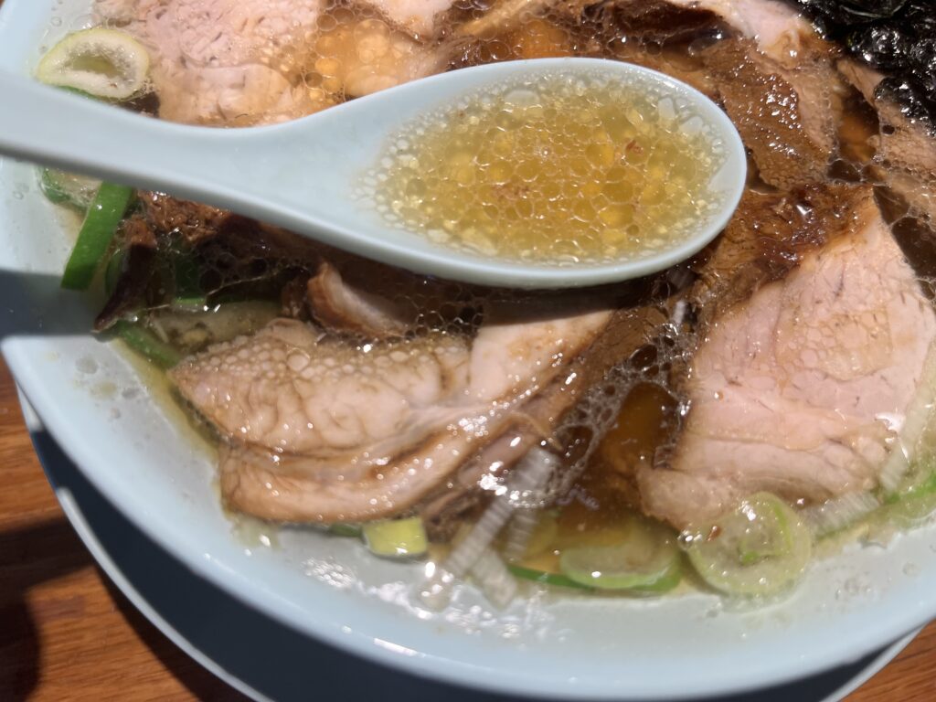 澄んだ醤油清湯スープ。