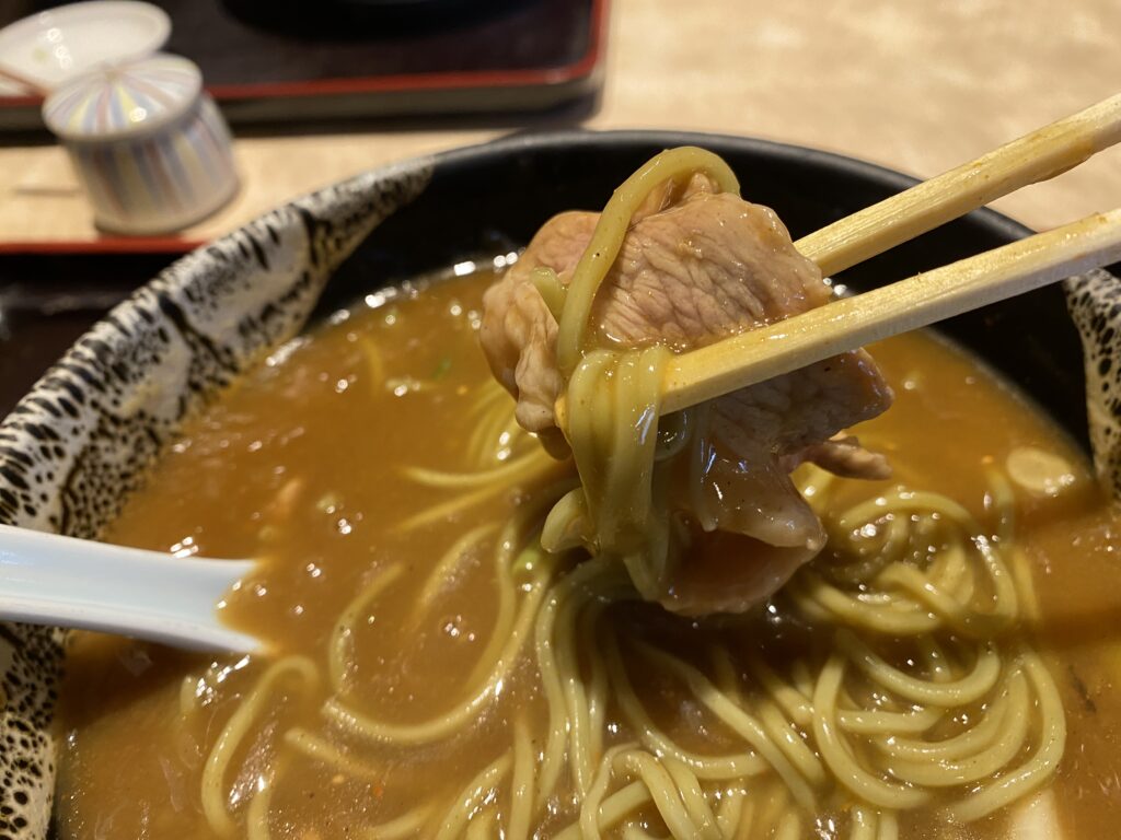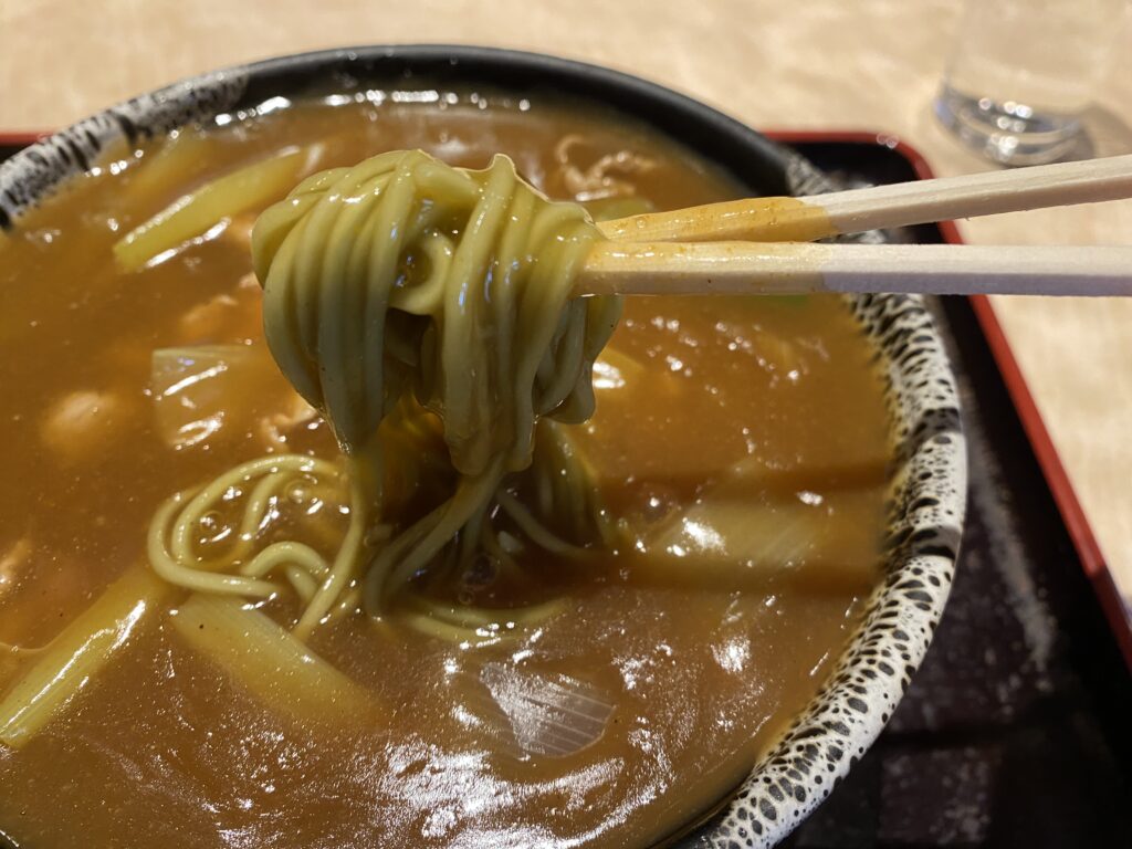 長寿庵は茶そばのため、カレーとの相性が抜群です。