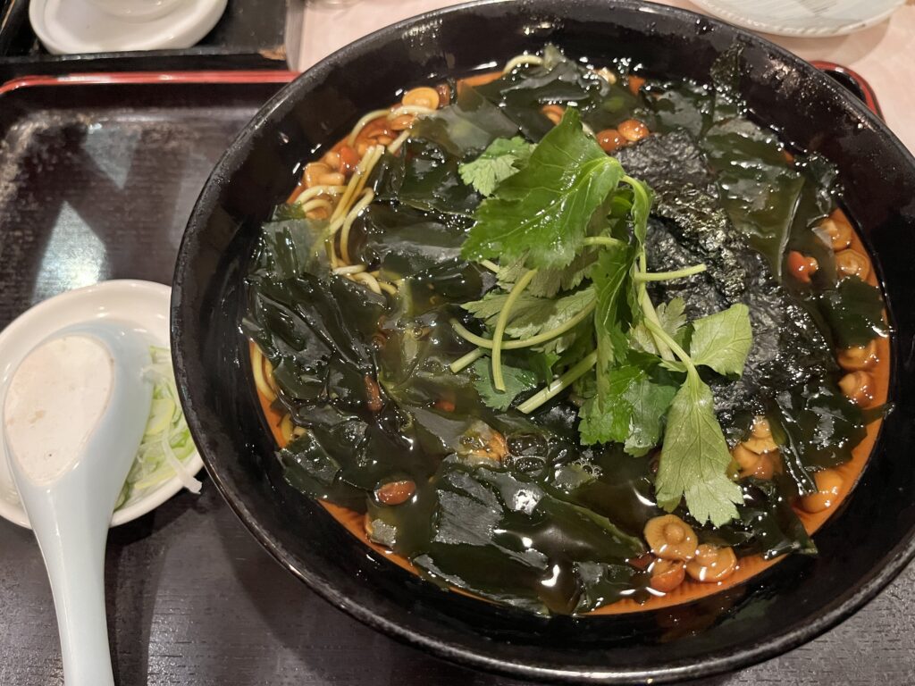 着丼時のワカメと海苔の香りが良いです。なめこのつるんとした感じが好きです。三つ葉も一緒に食べて独特の香りを感じながら、爽やかに蕎麦をいただきます。