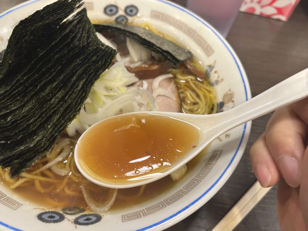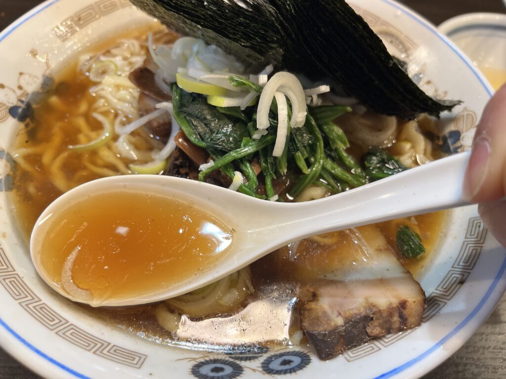 スープを一口。甘みを感じるスープ。純正スープを堪能します。