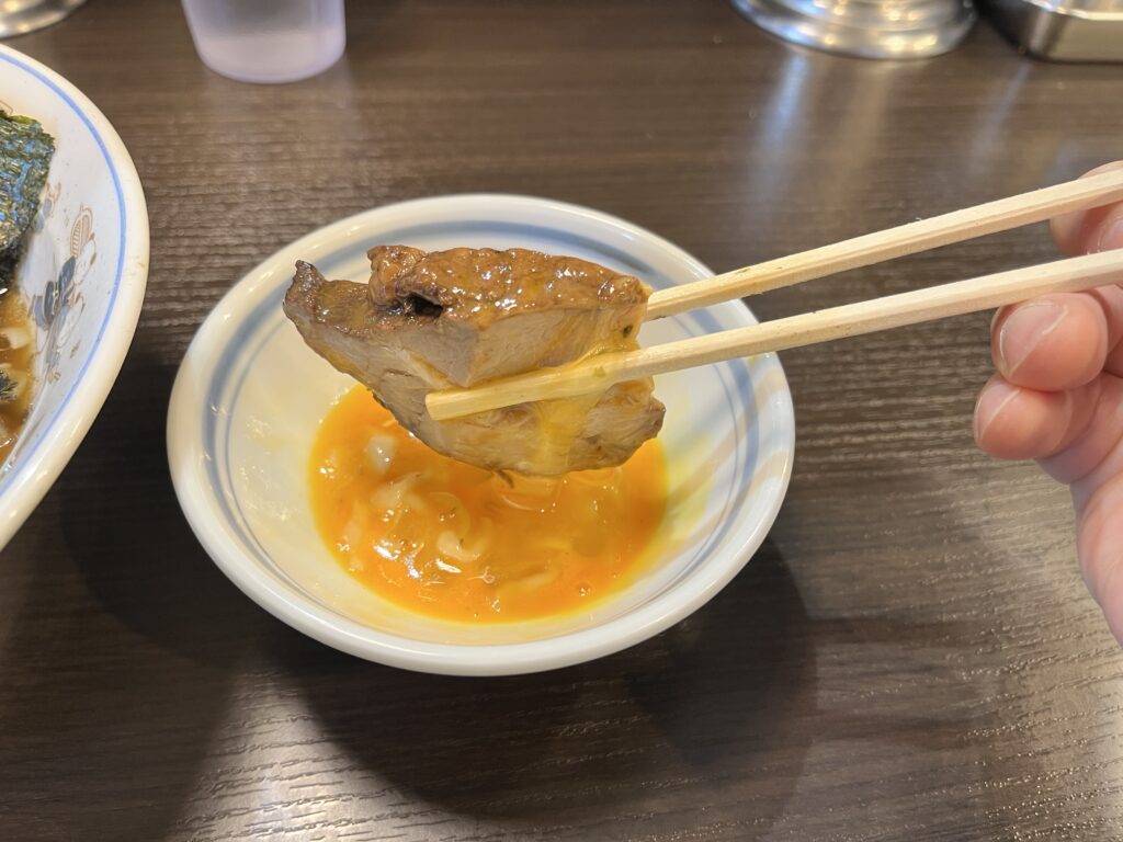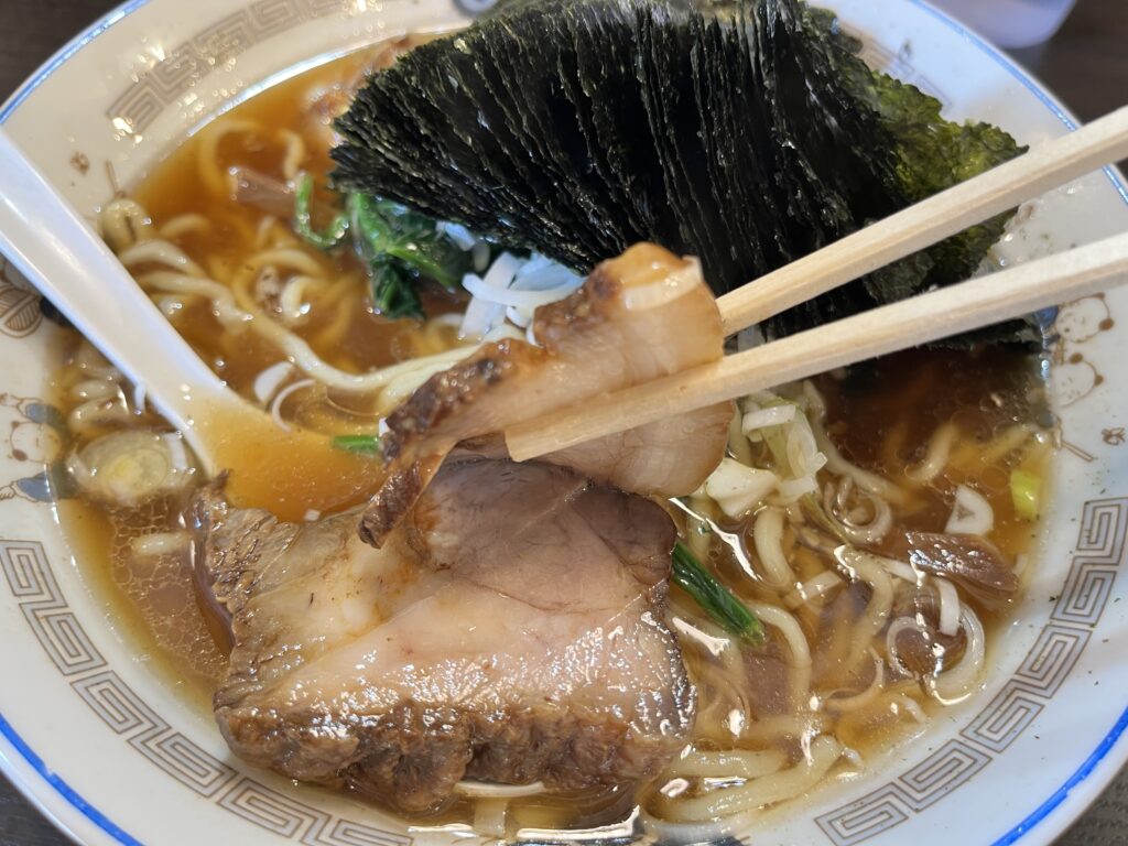 大きめのチャーシューもありがたい。脂の感じが強いかと思えばそんなことはありません。とても美味しいです。