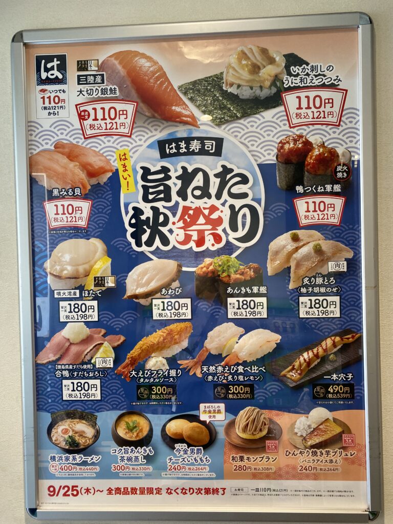 萩中エリアで遊んだ帰りには、ぜひ「はま寿司」でお寿司タイムを楽しんでみてください。