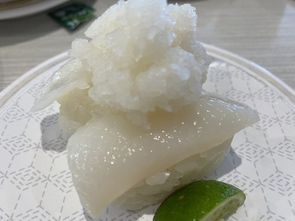 薄いですが、コリコリの歯ごたえは他にはないネタです。磯の感じが、夏を感じます。