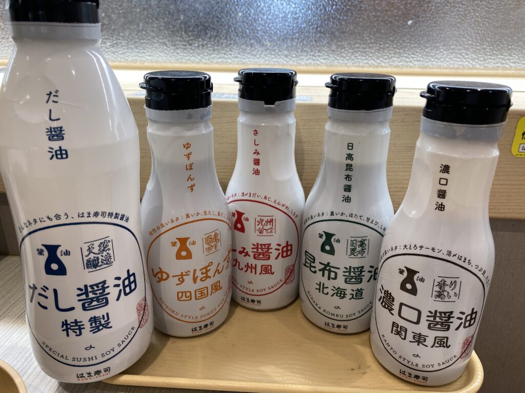 はま寿司の魅力のひとつが「5種類の醤油」。ネタによって味を変えられます。