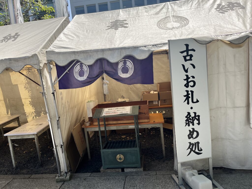 古いお札は参道途中の納め所へ。