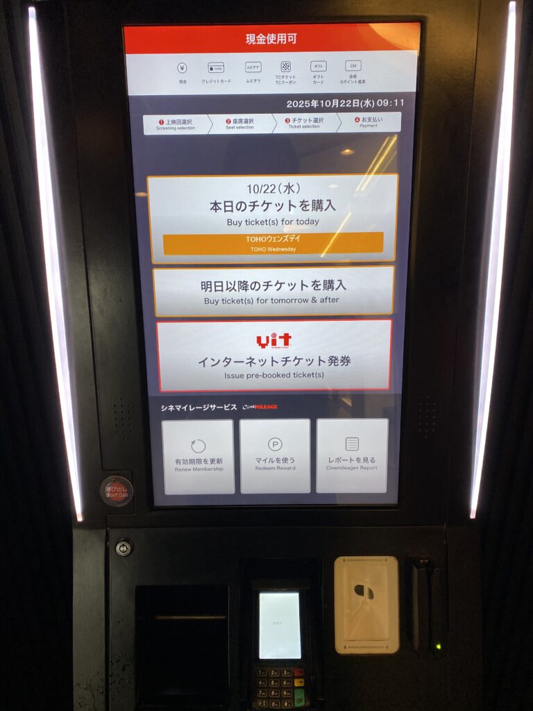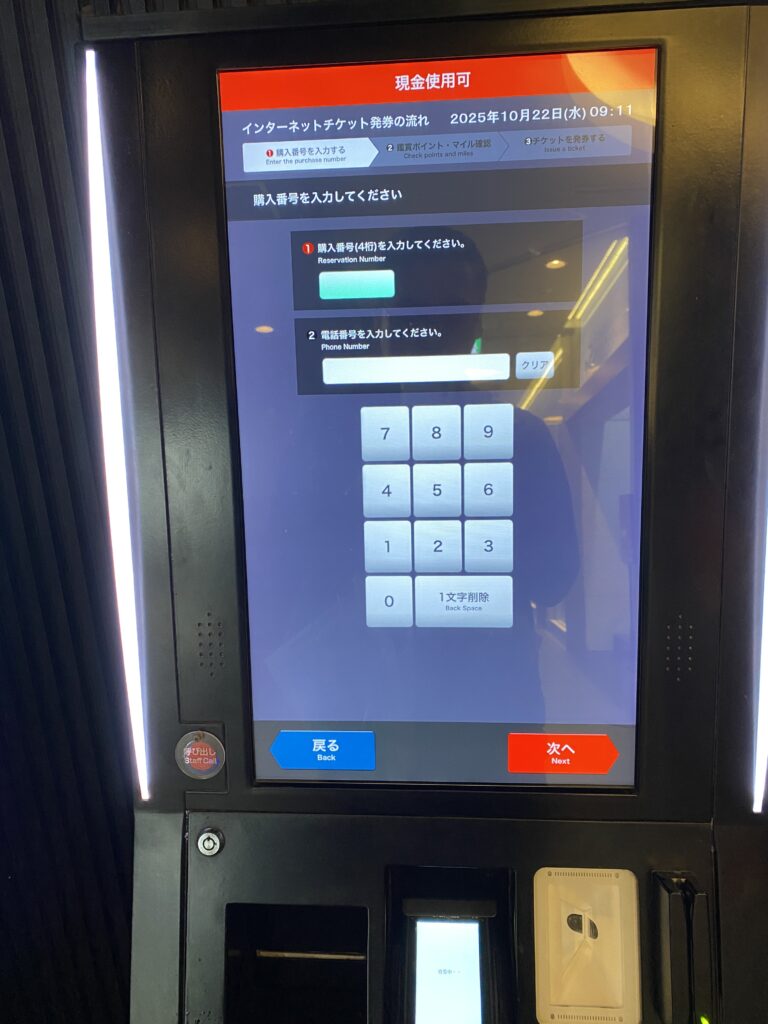 手間取ることはないとしても、Webで事前に決済まで済ませておくことで「購入番号」「電話番号」を券売機に入力することでチケットの発券がスムーズに行えます。Web決済はApple Payで支払えます。