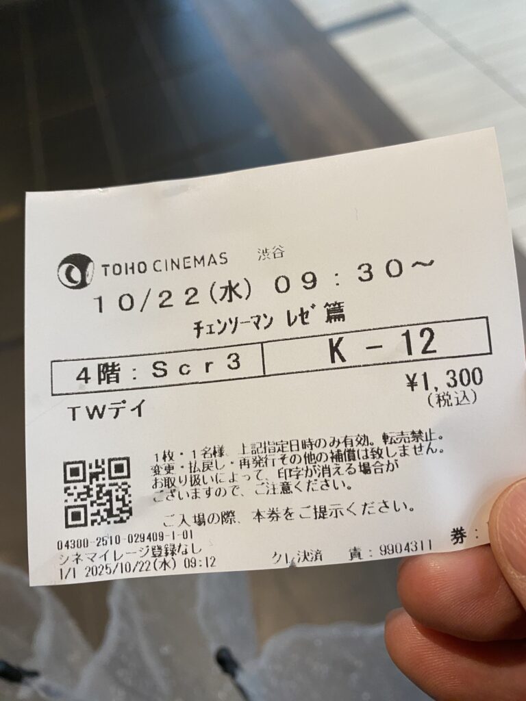 2025年9月公開の「劇場版 チェンソーマン レゼ編(CHAINSAW MAN The Movie: Reze Arc)」を、渋谷TOHOシネマズで鑑賞してきました。