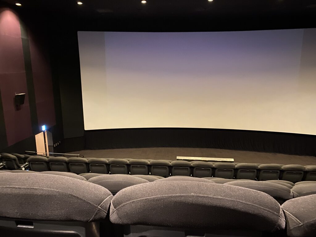 間も無くして、スクリーンがあいたので、早速席に座ります。今回はK-12席(後方から2列目中央)を選びましたが、音・映像ともに没入感抜群でした。これから始まると思うとワクワクします。9:30ごろ、会場が暗くなっていろいろな予告があり、9:45スタート。映画に没頭します。