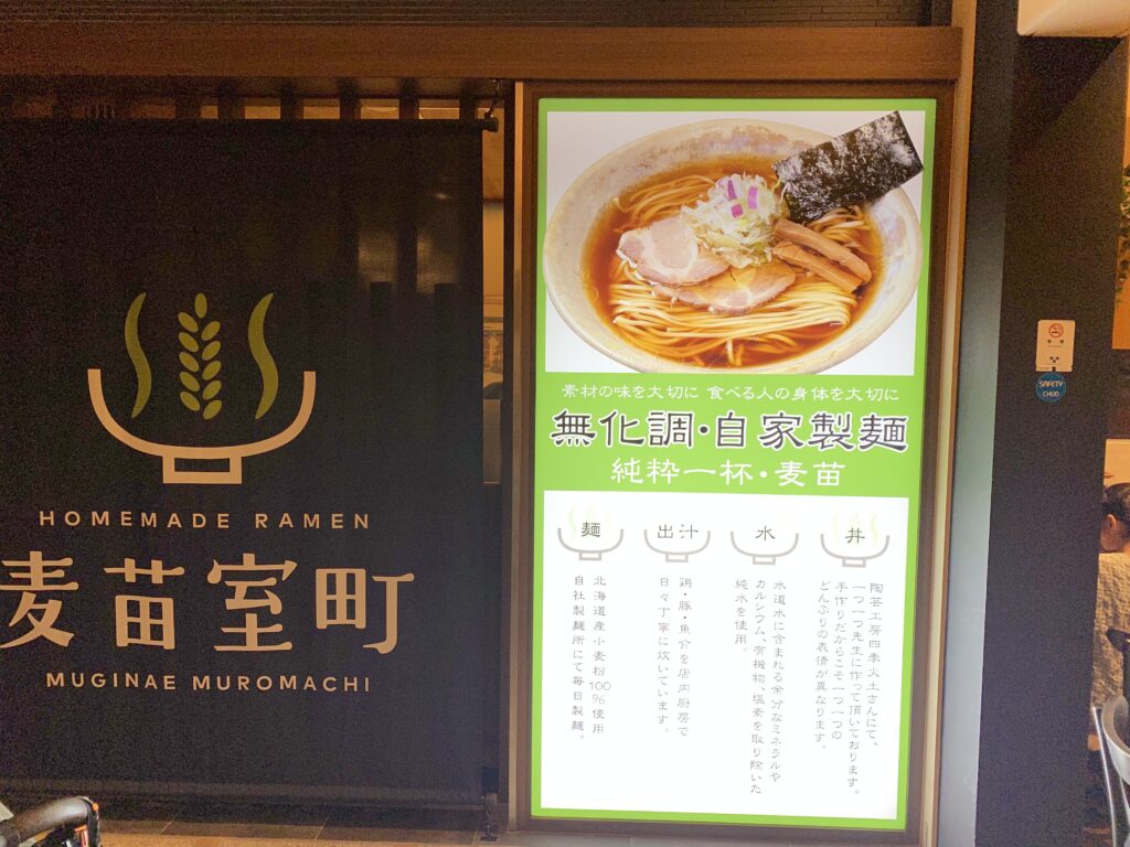 Homemade Ramen 麦苗室町 COREDO室町店」は、無化調・自家製麺にこだわり抜いた唯一無二のラーメンを提供してくれるお店。日本橋三越から徒歩5分程度ととても近いです。