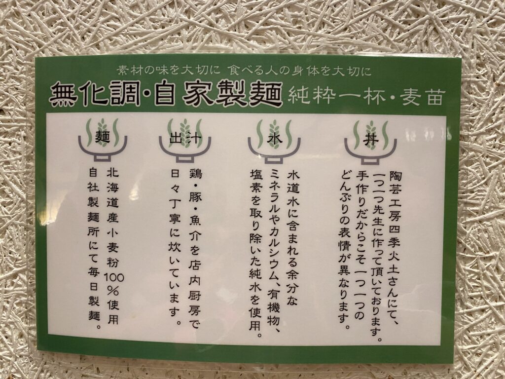 麦苗のラーメンは「素材の味を大切に、食べる人の身体を大切に」というコンセプトで作られています。