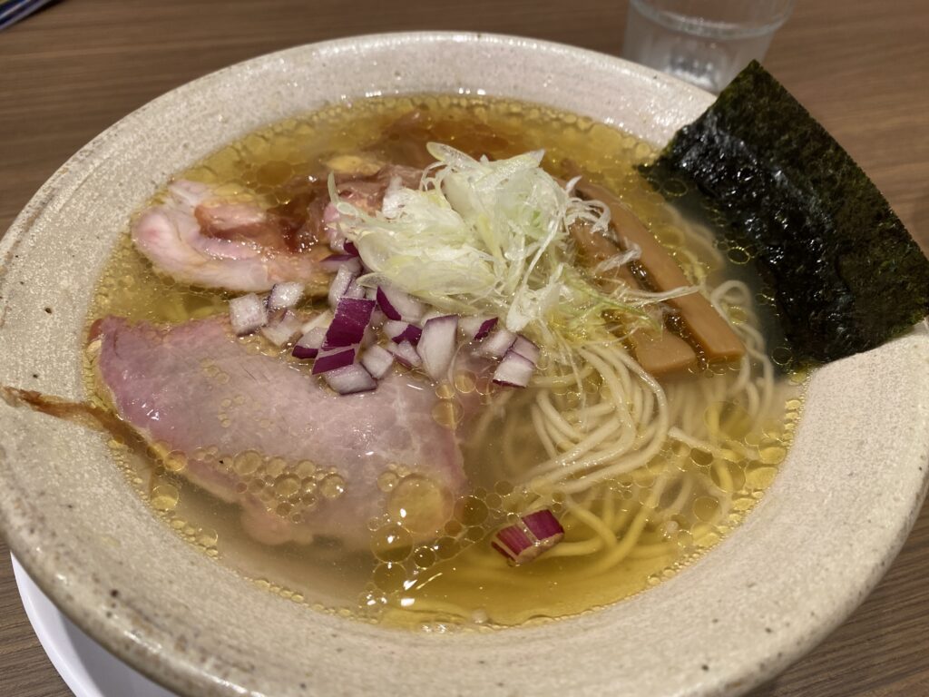 美しいビジュアルから丁寧さが伝わる一杯。雑味のない地鶏スープに、繊細な塩味がマッチ。シンプルながら深い味わいを楽しめます。