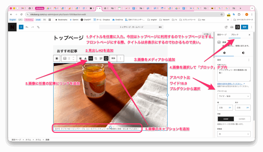 5. 画像にはキャプションも設定しておきます。